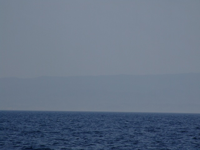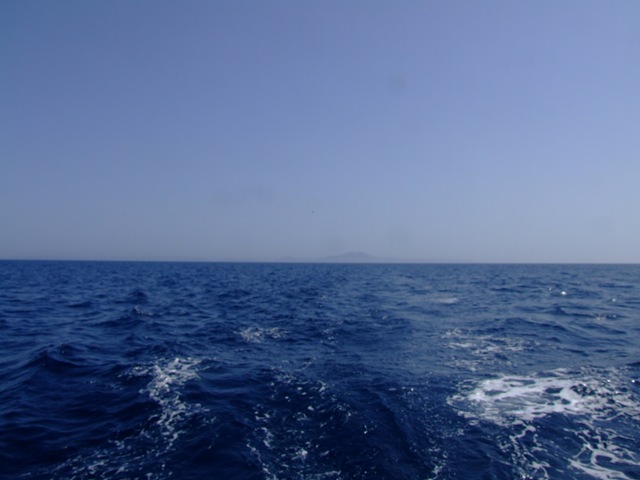 Om 10:30 zijn we uit zicht van het land en echt midden op zee. Het zal nog wel even duren voordat we weer land zien. Halverwege komen nog wel op een afstand van 8 mijl van een heel klein eiland. Als je goed keek, kon je ze vaag zien. Om ca. 15:45 zag ik in de verte al iets dat land zou kunnen zijn. Het zou echter ook een wolk kunnen zijn. Dat kon je toen nog niet goed zien. Een half uurtje later werd wel duidelijk dat het echt om land ging. Italië is inzicht.