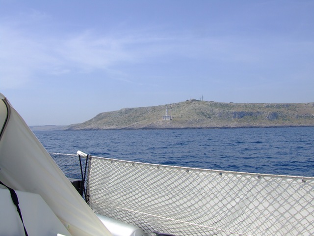 31′ 42,121" O). Rond 12 uur zijn we er, na eerst nog even getankt te hebben in Otranto zelf. Het is er niet echt spannend, maar de kust wordt vanaf hier langzaam wel weer mooier. Het klopte toch wel dat deze kant van Italie niet zo mooi is (hoewel we de andere kant nog niet gezien hebben). Een aantal van de stadjes is wel aardig, de kustlijn zelf biedt echter niet veel.