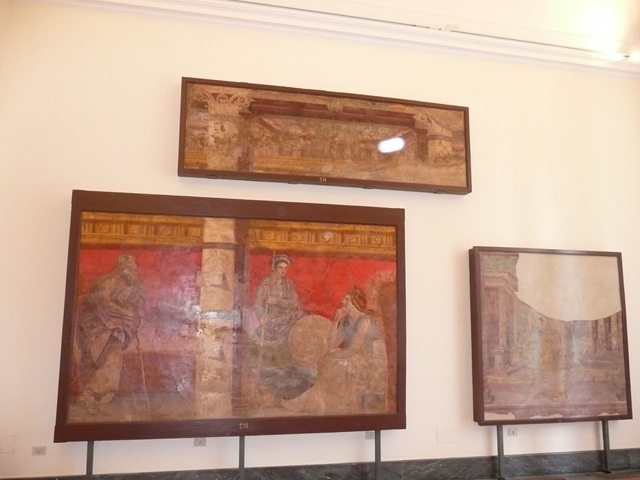 Vandaag willen we met de trein naar Napels. Vanuit de haven moeten we dan eerst de bus naar het station nemen. We hebben echter geen kaartjes en die kun je in de bus ook niet kopen 🙁 Dan maar een stukje zwart rijden. Gisteren mochten we van de chauffeur ook mee zonder te betalen. Eenmaal op het station moeten we eerst kaartjes zien te krijgen. We gaan in de rij staan, maar het duurt wel even. Eenmaal aan de beurt vragen we om biglietto Napoli. De man probeert iets duidelijk te maken en ze spreken geen Engels, dus het is best lastig. Hij wil weten welke trein we willen. Je hebt hier blijkbaar verschillende prijzen voor verschillende treinen en je moet een plaats op een trein reserveren…We nemen de Intercity en om 12:15 zijn we in Napels. Eenmaal buiten heerst er verkeerschaos. En langs de straten staat het helemaal vol met kraampjes met riemen, leren tassen en zonnebrillen. Vermoedelijk allemaal namaak. We maken snel dat we wegkomen uit die ongezellige drukte en gaan op zoek naar het Nationaal Museum voor Archeologie. Hier moet ook veel uit Pompei liggen.