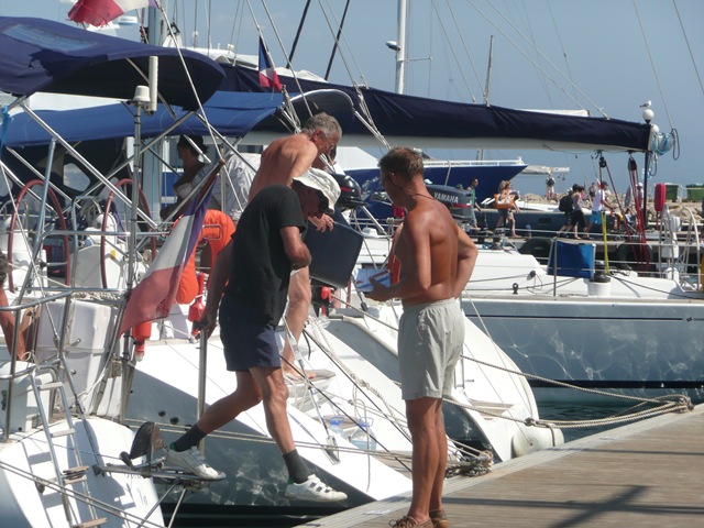 ‘s Avonds wordt de wind wat sterker, maar nog niet echt heel hard. Zaterdag overdag staat er de meeste wind en in de avond wordt het langzaam minder. Zondag moet een goede dag zijn om weer verder te gaan. We moeten beslissen of we met George meevaren of dat we een tussenstop maken. George heeft wat meer haast omdat hij 30 juli bij Cap d’Agde met zijn.