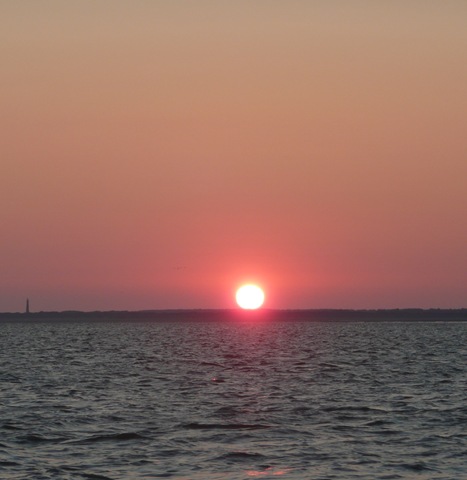 Om precies 4:30 gaan de trossen los. Het is al schemerig licht door de maan en de opkomende zon. Hoewel het nog een klein uurtje duurt voordat we de zon echt op zien komen. Toch altijd apart…met opkomende zon aan het varen. ‘t Geeft altijd mooie plaatjes