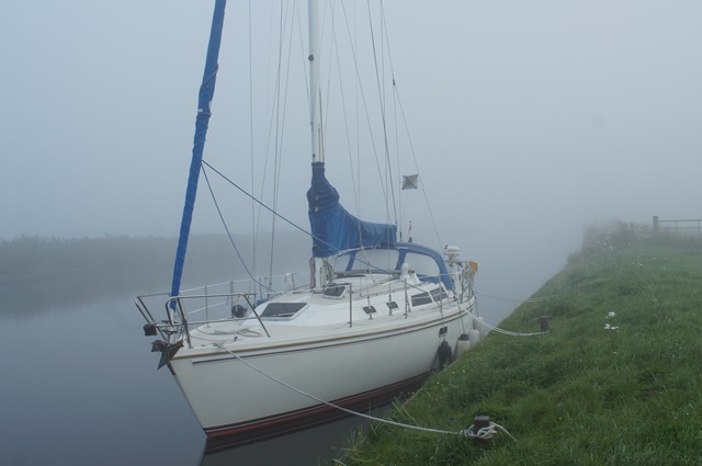 Zaterdag vertrekken we rond 8:45 in de mist. De motor loopt echter nog steeds als een zonnetje.
