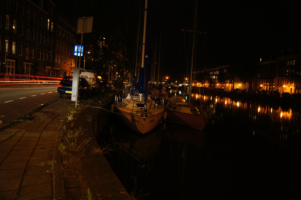 Amsterdam. We moeten daar rond middernacht zijn om door de spoorbrug te kunnen gaan. Rond 22:00 kunnen we al door de eerste brug. Vervolgens moeten we aan de kade aanmeren. Het fenomeen dat je met de mast in de boomtakken komt, is nieuw voor ons. Gelukkig waarschuwt een andere boot ons op tijd. We wachten tot uiteindelijk 2:00 voor de spoorbrug. Dan varen we in een konvooi van ca. 20 boten dwars door Amsterdam. Alle bruggen gaan direct open, zodra we aan komen varen. Erg leuk! Rond 4:00 zijn we bij het Nieuwe Meer. We meren meteen aan en gaan slapen. De volgende ochtend moeten we al rond 7:00 op. We willen dan de eerste opening van de brug bij Schiphol/ A9 halen.