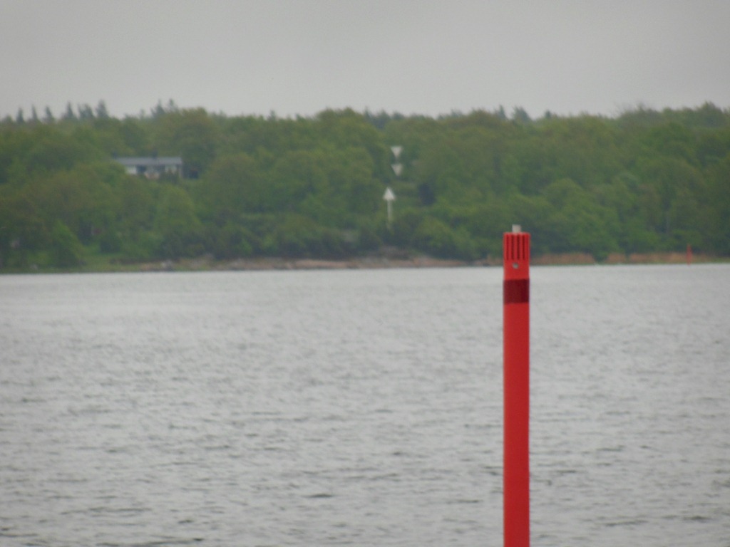 om richting noorden. De wind is inmiddels danig afgezwakt dat dat ook prima kan. We liggen echter wel aan lager wal wat haven betreft en ook in de haven. Dus even wegvaren met een spring naar de punt zodat we de motor kunnen gebruiken om de achterkant van de boot van de kade af te krijgen. Het regent nog wel, maar gelukkig niet heel hard. Het wegvaren gaat prima. De tocht is mooi. We moeten wel goed opletten bij een hele smalle strook. Met marktekens op het land weet je of je goed vaart. Als de witte pijlen boven elkaar in lijn staan, dan vaar je goed.