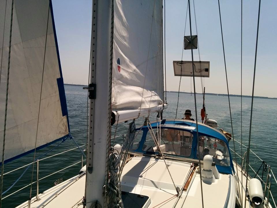 Zaterdag eerst alle spullen aan boord brengen en rond 13:00 vertrekken we. Er staat niet zo veel wind en vinden het prima om er vandaag maar een kort tripje van te maken. We hebben niet zo veel in om te moeten motoren. We gaan naar de Trintelhaven. Als we in de buurt zijn wil Sebastiaan de motor starten en dan doet hij het niet. Een probleem dat we vaker gehad hebben, maar dus nog steeds niet opgelost is. De startmotor is vorige winter al helemaal doorgemeten en die is helemaal in orde. Dan maar even starten door kortsluiting op het startrelais te maken met een schroevendraaier. Hij start meteen.