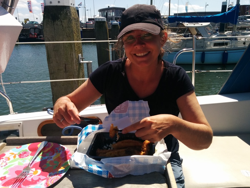 Zondag is een druilige dag met en hebben geen zin om dan te gaan varen en blijven nog een dagje liggen. We wilden eerst naar Terschelling gaan, maar de haven licht continue vol. Wellicht is het na het weekend beter, IMG_20150721_141813maar er wordt weer redelijk veel wind voorspeld. We wijzigen onze plannen en varen maandag en dinsdag binnendoor naar Lauwersoog. Dan kunnen we met de harde wind gewoon door blijven varen. Vanaf woensdag wordt het een paar dagen rustiger weer en willen dan buitenom naar het Duitse Waddeneiland Borkum varen. Dinsdag zijn we rond 13:30 in Lauweroog. Tijd voor een visje…althans…voor Hilda…but not for me 😉