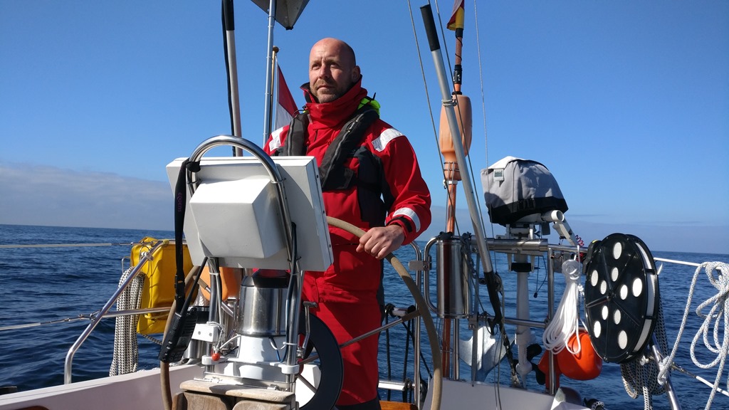 Als we eenmaal bij Lauweroog de haven uitvaren staan er toch best redelijke golven. Bij wind tegen stroom is dat geen pretje en klotsen we flink op en neer. Een half uurtje later komen we achter zandbanken terecht die de nodige bescherming geven. Het water is dan ook weer lekker rustig. Het lijkt een makkie te worden. Echter eenmaal bij het Westgat aangekomen nemen de golven flink toe en bonken rechten de wind en golven in. Soms valt de punt van het schip in één keer van een golf 3 meter naar beneden en duikt in de volgende golf waardoor het water overal over het schip heen stroom. Gelukkig houdt de nieuwe motor zich goed en ben ik blij dat we een extra sterke motor hebben waardoor we er goed doorheen kunnen komen. Het duurt een drie kwartier voordat we het Westgat uit zijn,. De golfen zijn echter nog te hoog om de koers naar het oosten te nemen. Daarbij moeten we namelijk haaks door de golf richting heen draaien en krijgen hem dan dus even pal van opzij. Met deze golven en wind is dat te gevaarlijk. We varen eerste nog een stuk door naar het noorden waar het water dieper wordt en de golven zodoende minder stijl. Een half uurtje later kunnen we heel langzaam onze koers gaan verleggen en zetten we ons genua bij zodat we ook wat zeildruk hebben wat het schip stabieler maakt. Gelukkig kunnen we de bocht langzaam maken en koersen we naar NOO richting de ingang van de Elbe. We blijven nog wel even een kleine 10 mijl boven de eilanden varen totdat we ter hoogte van het eerste Duitse wadeneiland Borkum zijn. De wind is dan inmiddels een stuk minder en ook de golven zijn afgenomen. Het blijft nog wel klotsen, maar het is een stuk beter te doen.