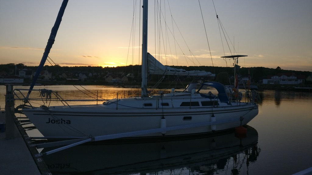 Vandaag willen we naar Hallevik varen. Een tocht van goed 30 mijl. Daarbij varen we langs Ahüs. De plaats waar we 5 jaar geleden tegen windkracht 7 en golven van 2 meter aan het boksen waren. Op het moment dat we de haven in wilden varen, sloeg de motor af door, bleek achteraf, verstopte filters van een dieselbacterie. Nu gaat het gelukkig een stuk beter. Wel hebben we weer te maken met wat tegenwind, maar deze draait later op de dag gelukkig de goede kant op zodat we toch nog een heel stuk op zeil kunnen. We moeten langs een