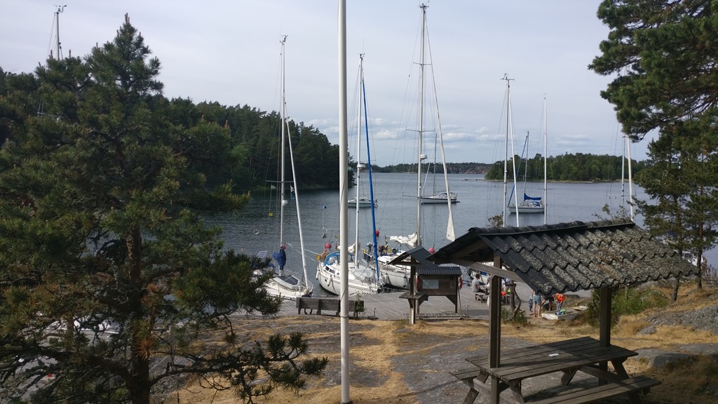 Vroeg uit de veren. Het is rustig weer en we willen op tijd in de haven zijn vanwege het weekend, dat betekent motoren. Voor ligplaats hebben we twee opties een steigertje van SXK of de SXK haven Malma Kvarn.