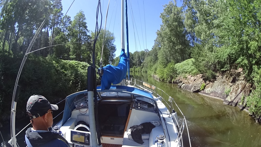 voor. Het stuk daarna is erg mooi met hele smalle geultjes tussen de rotsen en bomen. We stoppen uiteindelijk bij Jonsboda. Een kleine haven waar verder niet veel is op een cafeetje na en een kleine camping. We bespreken wat we verder gaan doen. Wij moeten naar Karlstad in het noorden van het meer om naar de koppeling te laten kijken. Als het goed is gaat deze vervangen worden. De Goelyo gaat naar het zuiden van het meer.