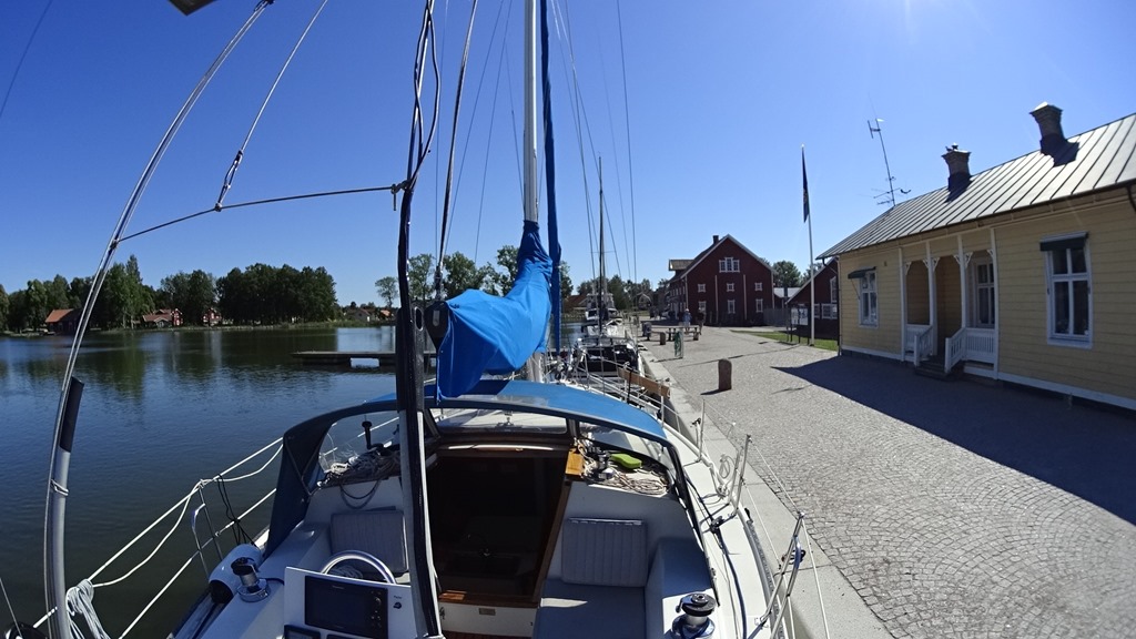 De volgende 16 sluizen doen we in één dag, samen met een ander Catalina. Ze zijn zo vriendelijk om ons voorop te laten gaan in de sluis. Dat is voor ons een stuk eenvoudiger. Zij zijn met drie volwassenen en vinden het extra werk bij de dubbele sluizen als je als tweede ligt geen probleem. Iets over vier zijn we in Sjotorp. De tweede haven ligt vol, dus we blijven in de eerste haven liggen, drie sluizen voor het einde van het kanaal. In Sjotorp is elke Zweed, die kan, voetbal aan het kijken. En aan het gejuich kunnen we horen dat ze voorkomen en uiteindelijk winnen. De Zweden zijn blij, maar toch iets minder uitbundig dan in Nederland.